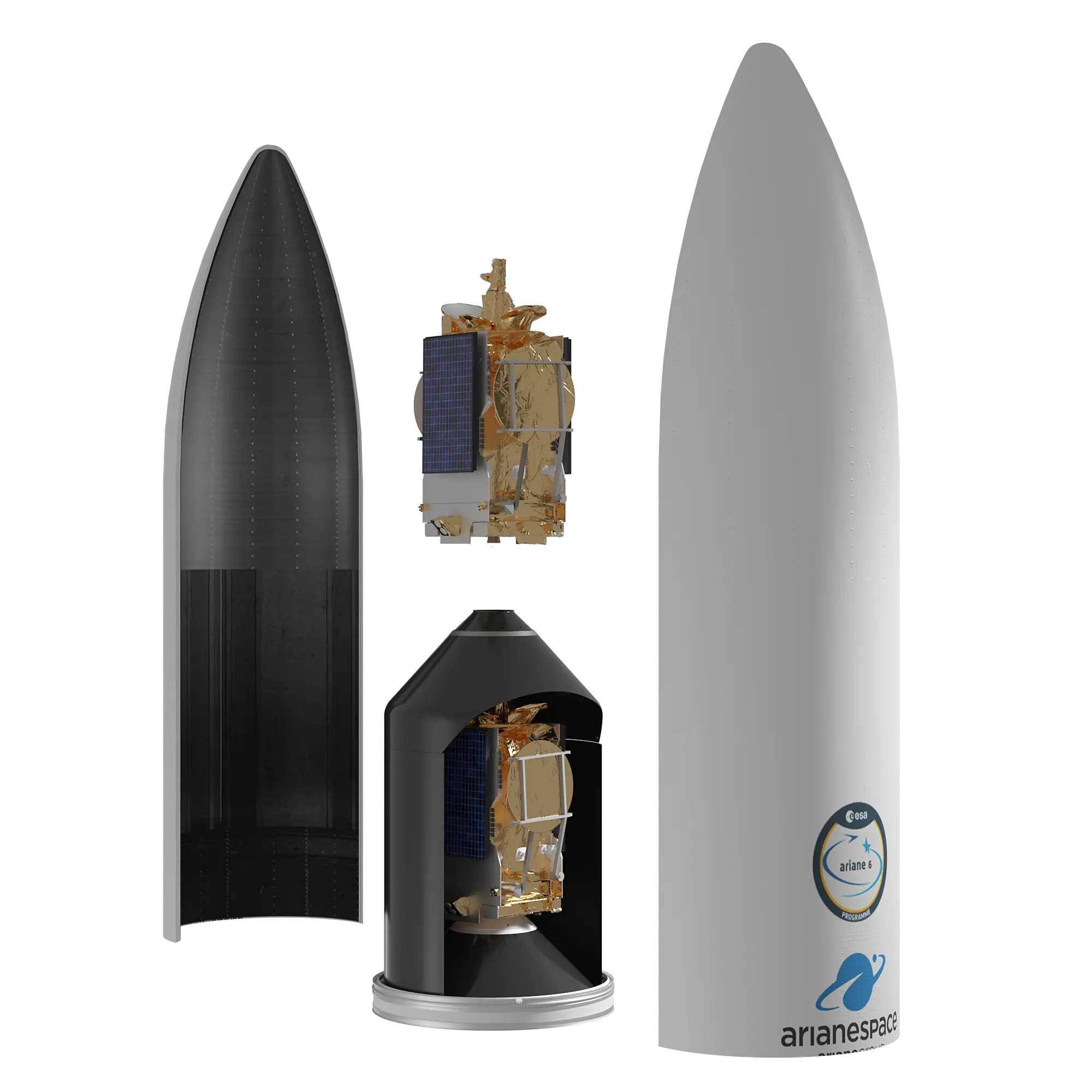 Le composite supérieur et les charges utiles sont préparés par Arianespace avec ses clients. Ce processus spécifique commence par la préparation des charges utiles dans des locaux spécialisés, puis le composite supérieur est constitué dans le bâtiment d’encapsulation, avec les charges utiles et les deux demi-coiffes. L’ensemble rejoint alors le pas de tir pour être installé sur le lanceur grâce au portique mobile.